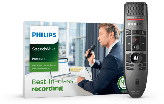 The SpeechMike Premium takes dictation to a new level. May it be the free-floating studio quality Precision Microphone, a microphone grille with optimised structure, built-in noise-reduction pop filter, hygienic surface or the motion sensor – the SpeechMike Premium sets the new standard.